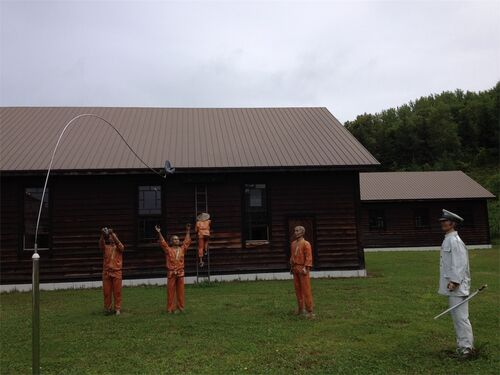 鳥と囚人。ちなみに鳥はブンブン回っています。 目が釘付けですよ、網走監獄博物館。 今朝、春の匂いがしました。 湖もたいそう穏やかで、大きなたらいがあれば乗って漕ぎ出したい気分。 …しかし眩しいなぁ〜。 晴れた日は雪の反射が眩しくて、店内にいても…