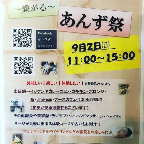 イベントのお知らせです。 来たる9月2日 日曜日 釧路市のあんずの種さん主催のイベント、あんず祭に参加します。 これに伴いまして、1日土曜日〜3日月曜日まで店舗営業はお休みします。 よろしくお願いします!! 出店者を見ると…釧路で人気のお店が勢ぞろい…